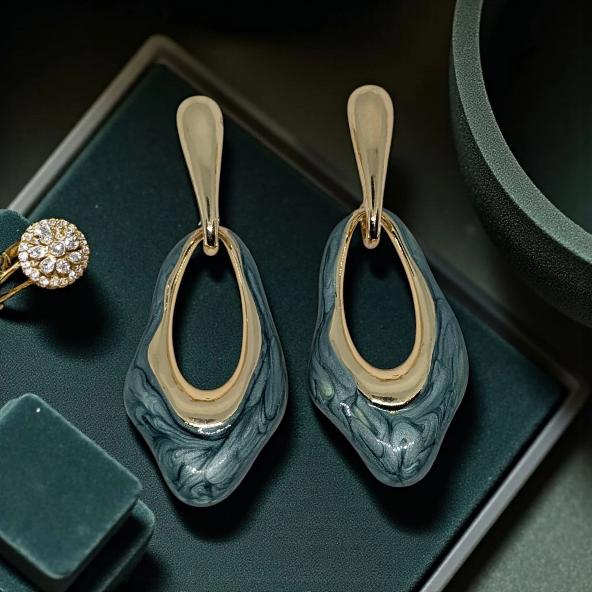 Elevate your accessory collection with these Deep Teal Gold-Toned Earrings. Expertly crafted, their rich teal hue combined with a refined gold-tone finish offers a sophisticated contrast that complements both casual and formal attire.